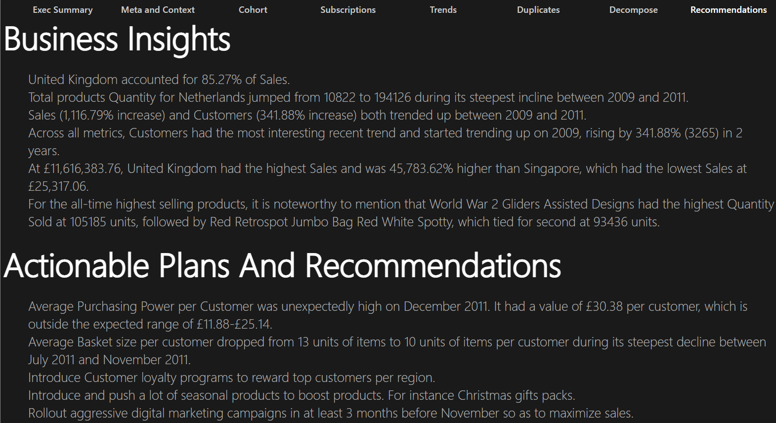 Had the opportunity to work on a project on an online retail sales business. I used Microsoft Power BI to create a model, measures, and calculated columns that allowed me to build a comprehensive cohort and customer retention report. Watch The Project Preview Video here: